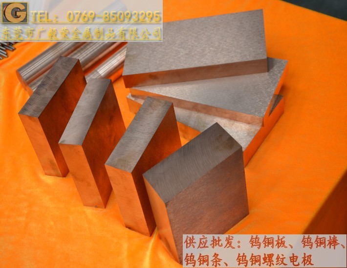 钨铜合金是钨和铜组成的合金。常用合金的含铜量为10%-50%。合金用粉末冶金方法制取,具有很好的导电导热性,较好的高温强度和一定的塑性。在很高的温度下,如3000℃以上,合金中的铜被液化蒸发,大量吸收热量,降低材料表面温度。所以这类材料也称为金属发汗材料。 钨铜复合材料是以钨、铜元素为主组成的一种两相结构假合金,是金属基复合材料.由于金属铜和钨物性差异较大,因此不能采用熔铸法进行生产,一般采用粉末合金技术进行生产。其工艺流程为制粉--配料混合--压制成型--烧结溶渗--冷加工。 钨铜合金特性 钨铜合金综合了金属钨和铜的优点,其中钨熔点高(钨熔点为3410℃,铜的熔点1080℃),密度大(钨密度为19.34g/cm3,铜的密度为8.89 g/cm3) ;铜导电导热性能优越,钨铜合金(成分一般范围为WCu7~WCu50)微观组织均匀、耐高温、强度高、耐电弧烧蚀、密度大;导电、导热性能适中、导热性能好、加工性能优异、热膨胀小。